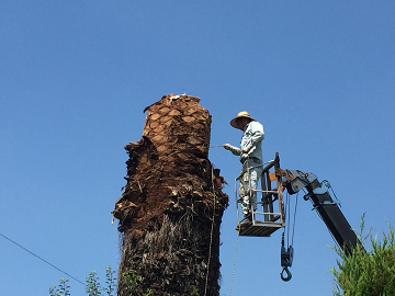 ご依頼者様は、敷地内にある大きなフェニックスの木にお困りでした。